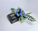 "Pamięć" - ozdobna książka z kwiatową kompozycją z róż błękicie