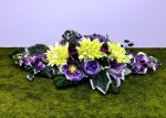 Fiolet i seledyn - podłużna kompozycja kwiatowa na grób | Wiązanka na cmentarz