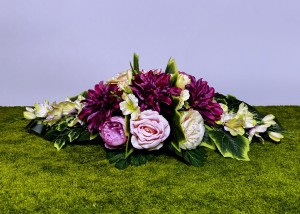 Fuksja i róż - podłużna kompozycja kwiatowa na grób | Wiązanka na cmentarz