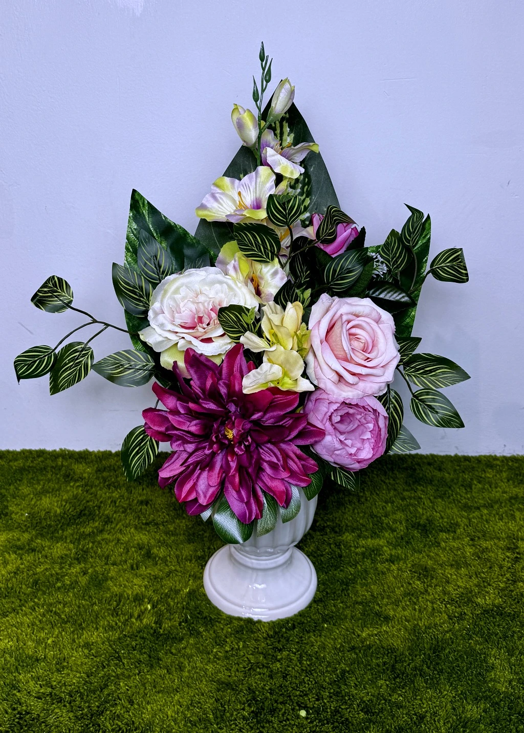"Fuksjowy Ogród" - całoroczny komplet na pomnik | Zestaw na cmentarz: wiązanka i bukiet do wazonu