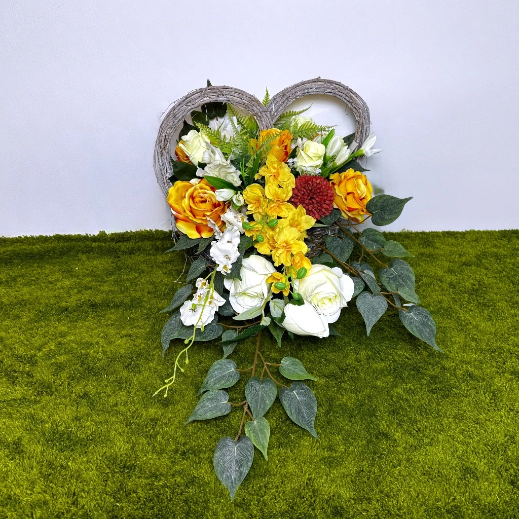 Poza walorami estetycznymi, kładziemy ogromny nacisk na parametry techniczne naszych produktów przeznaczonych do ekspozycji zewnętrznej. Aby ta ozdoba mogła bezpiecznie zdobić grób, jej wnętrze skrywa solidne obciążenie. Stabilność jest zapewniona przez dociążenie masą betonową, co skutecznie chroni kosz przed przesunięciem nawet podczas porywistych, wiosennych wiatrów. Zastosowanie naturalnej wikliny o jasnym splocie dodaje całości lekkości, jednocześnie będąc wytrzymałą bazą dla gęstego ułożenia roślin. Taka forma sprawia, że ten stroik jest nie tylko piękny, ale i bezpieczny dla powierzchni, na której spoczywa. Zapraszamy do wyboru tej słonecznej aranżacji, która postawiona na pomnik bliskiej osoby, będzie świadectwem niegasnącej pamięci i miłości, niosąc ze sobą spokój i harmonię w tym wyjątkowym czasie.