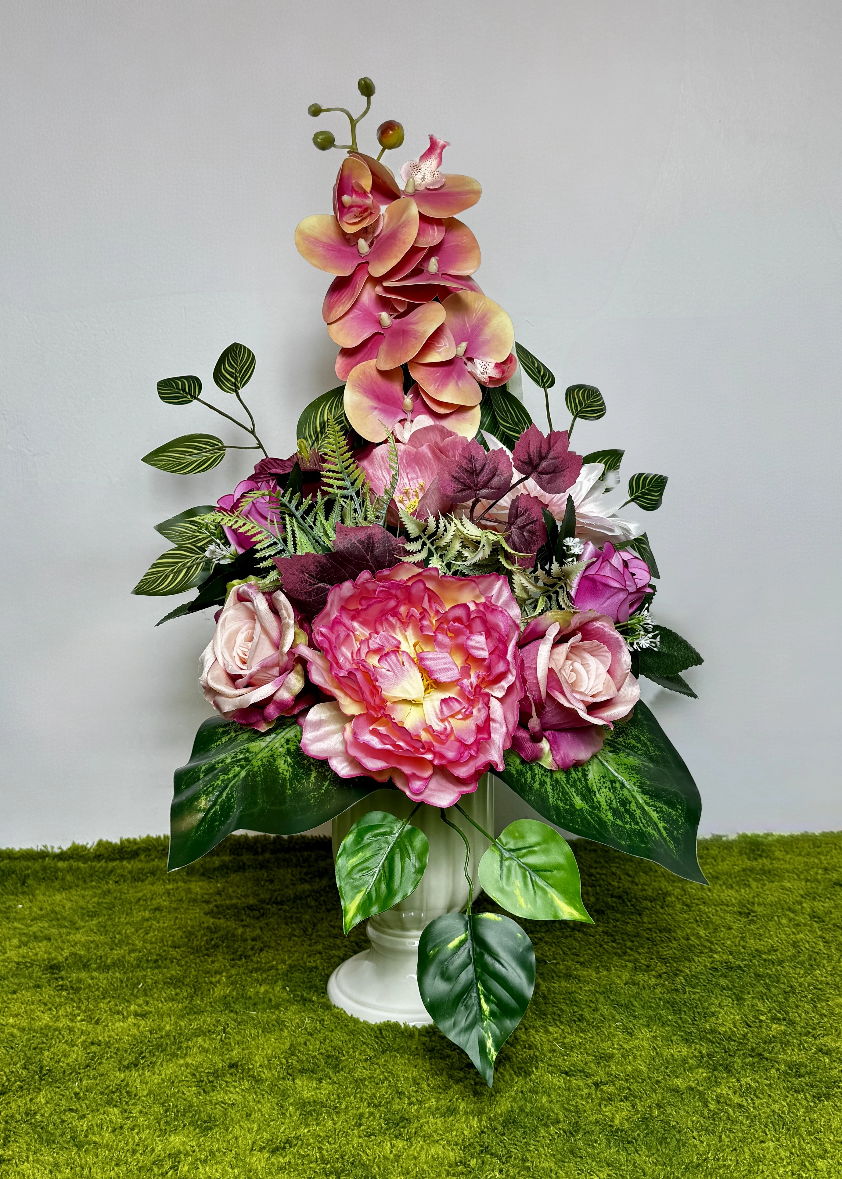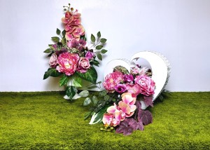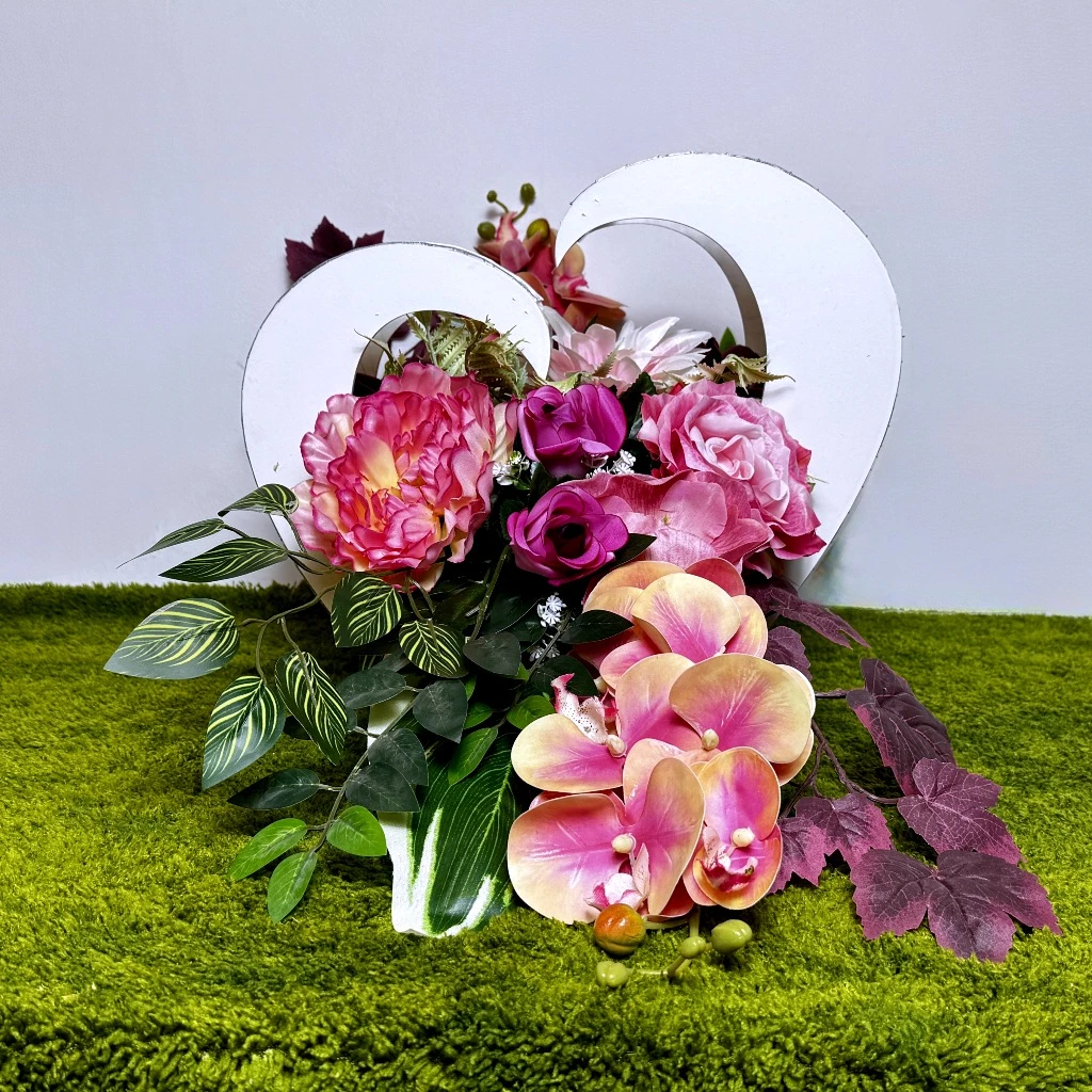 Piękny zestaw na cmentarz "Różane Serce" z sylikonowymi storczykami.